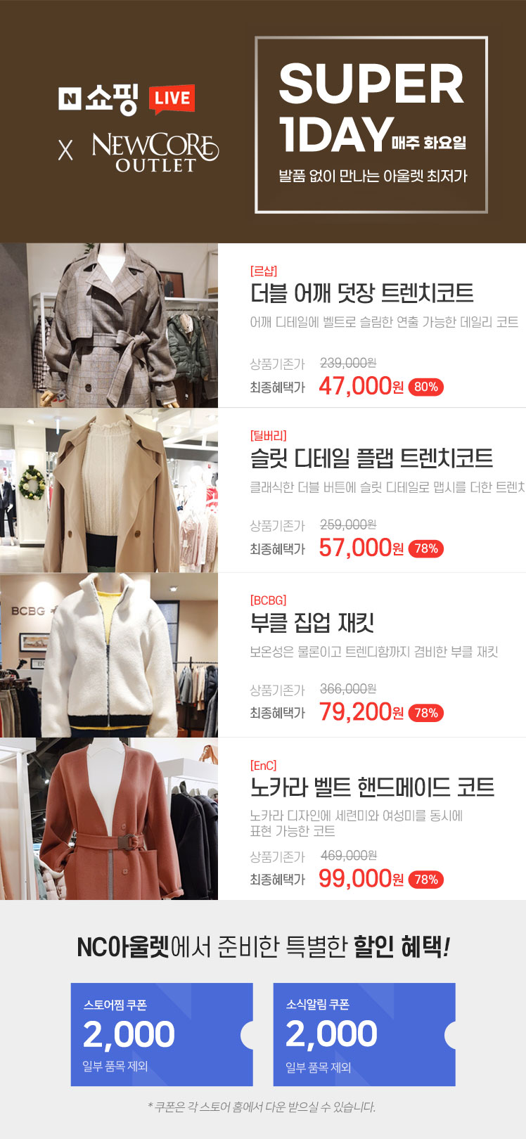 네이버 쇼핑 라이브 NC아울렛 최대 80%