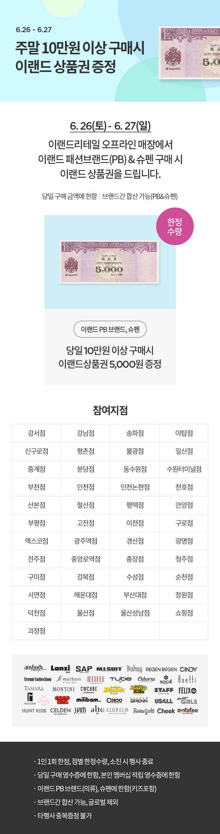 주말 10만원 이상 구매 시 이랜드 상품권 증정
