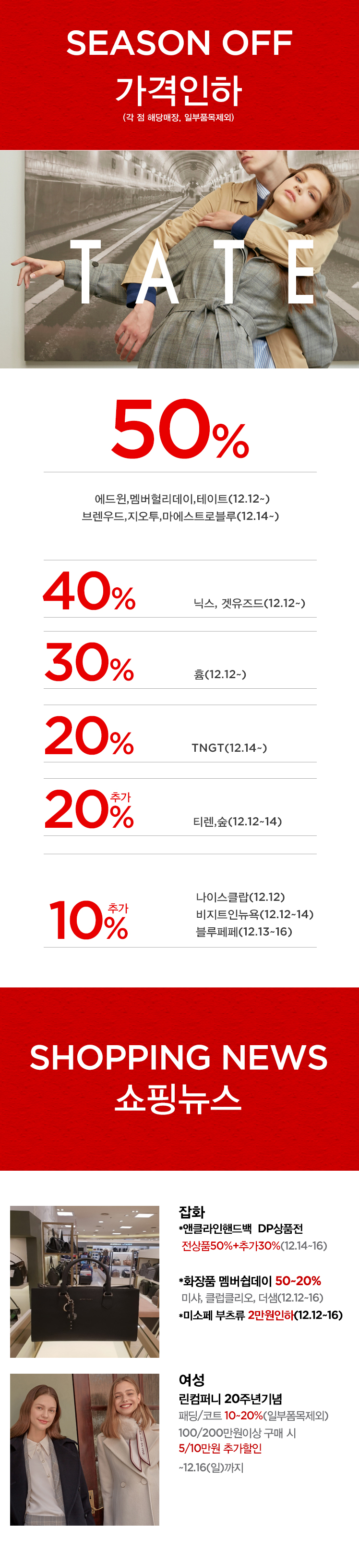 가격이 내려간다 쭉쭉쭉↓ 시즌오프 50%