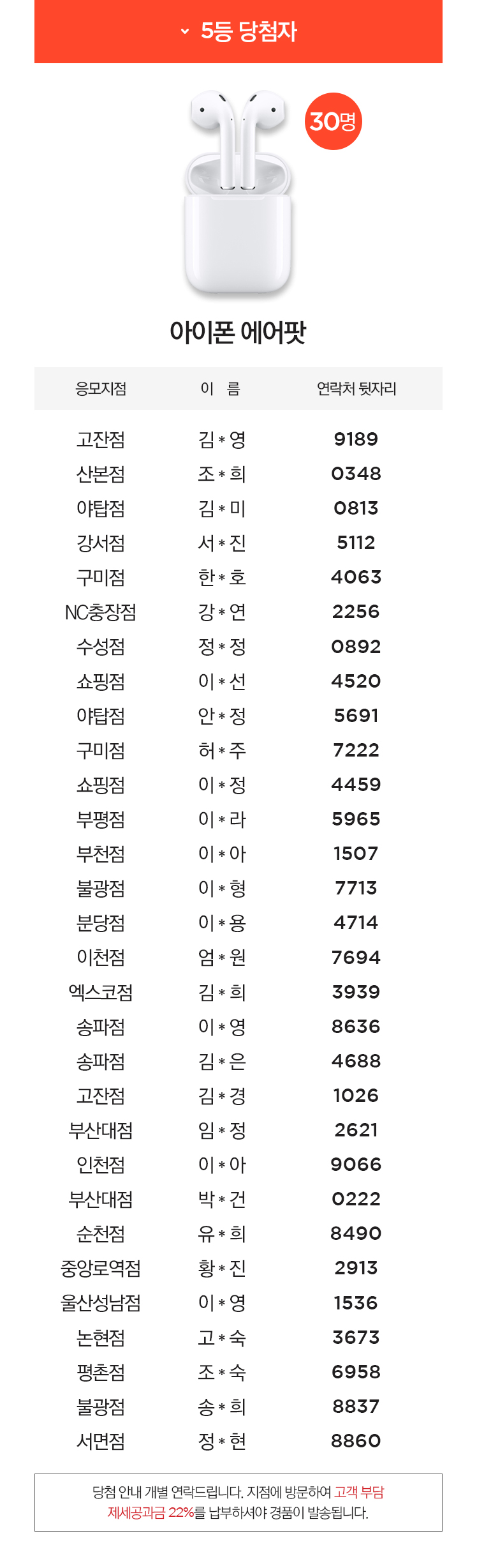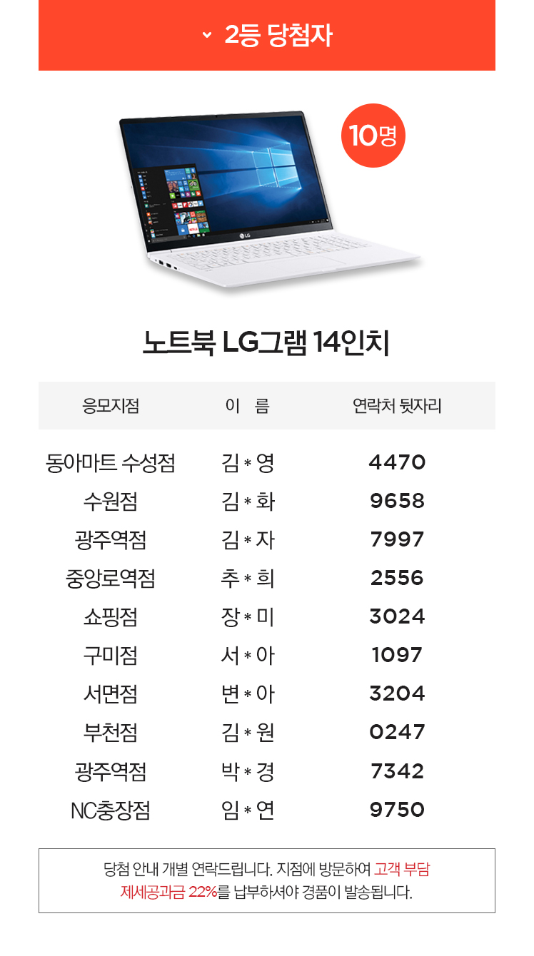 쇼핑제 2탄 경품이벤트 당첨자발표