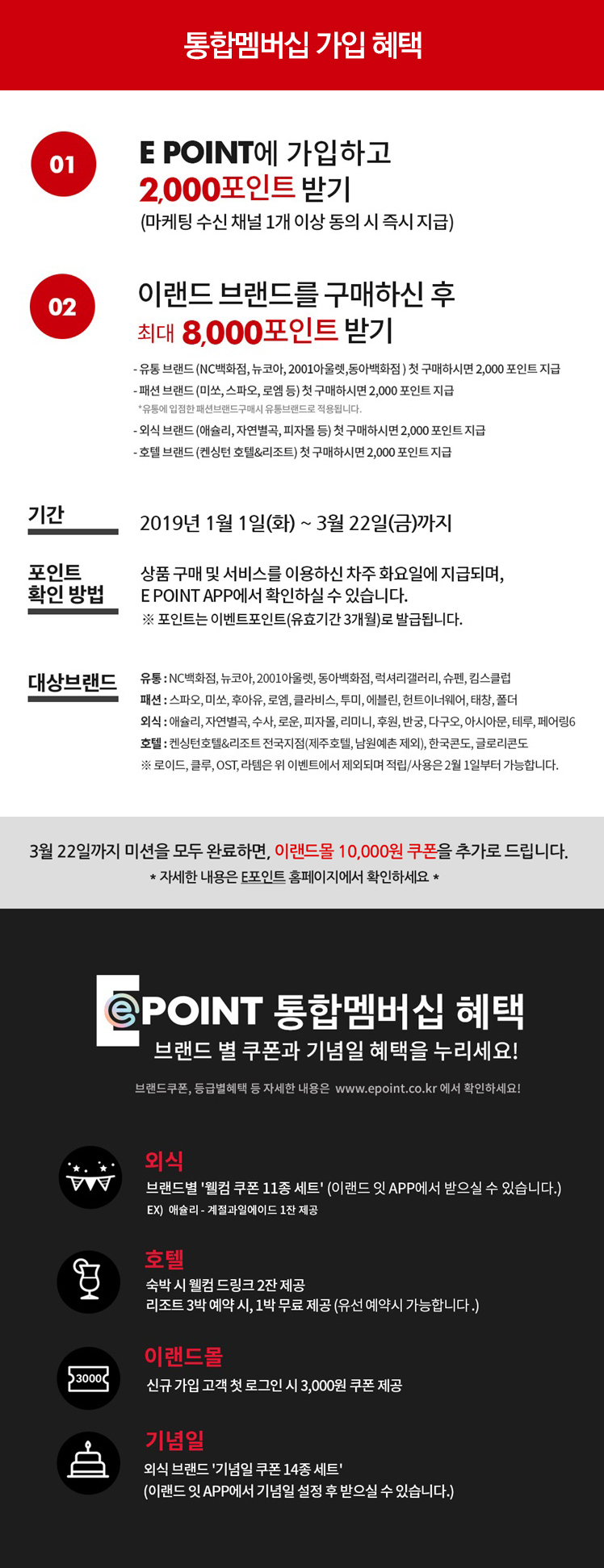 이랜드 통합멤버십 E.POINT에 가입하시고 최대 10,000포인트의 즐거움을 누리세요!
