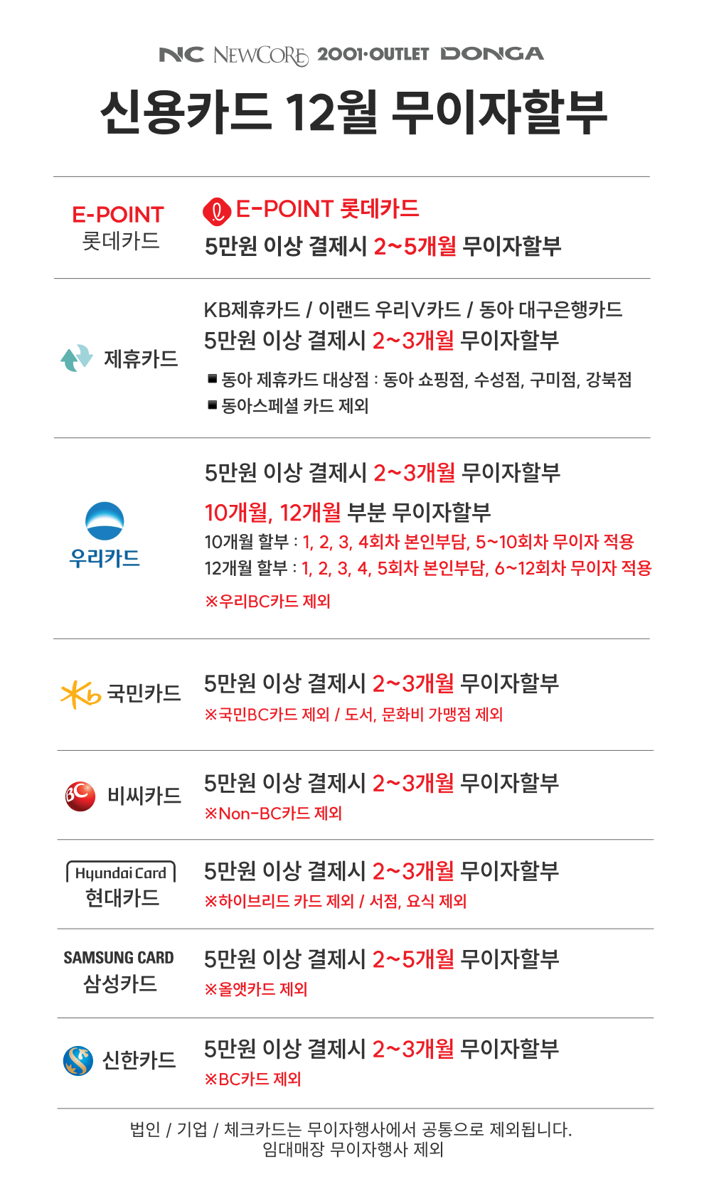 2025년 12월 신용카드 무이자할부 안내