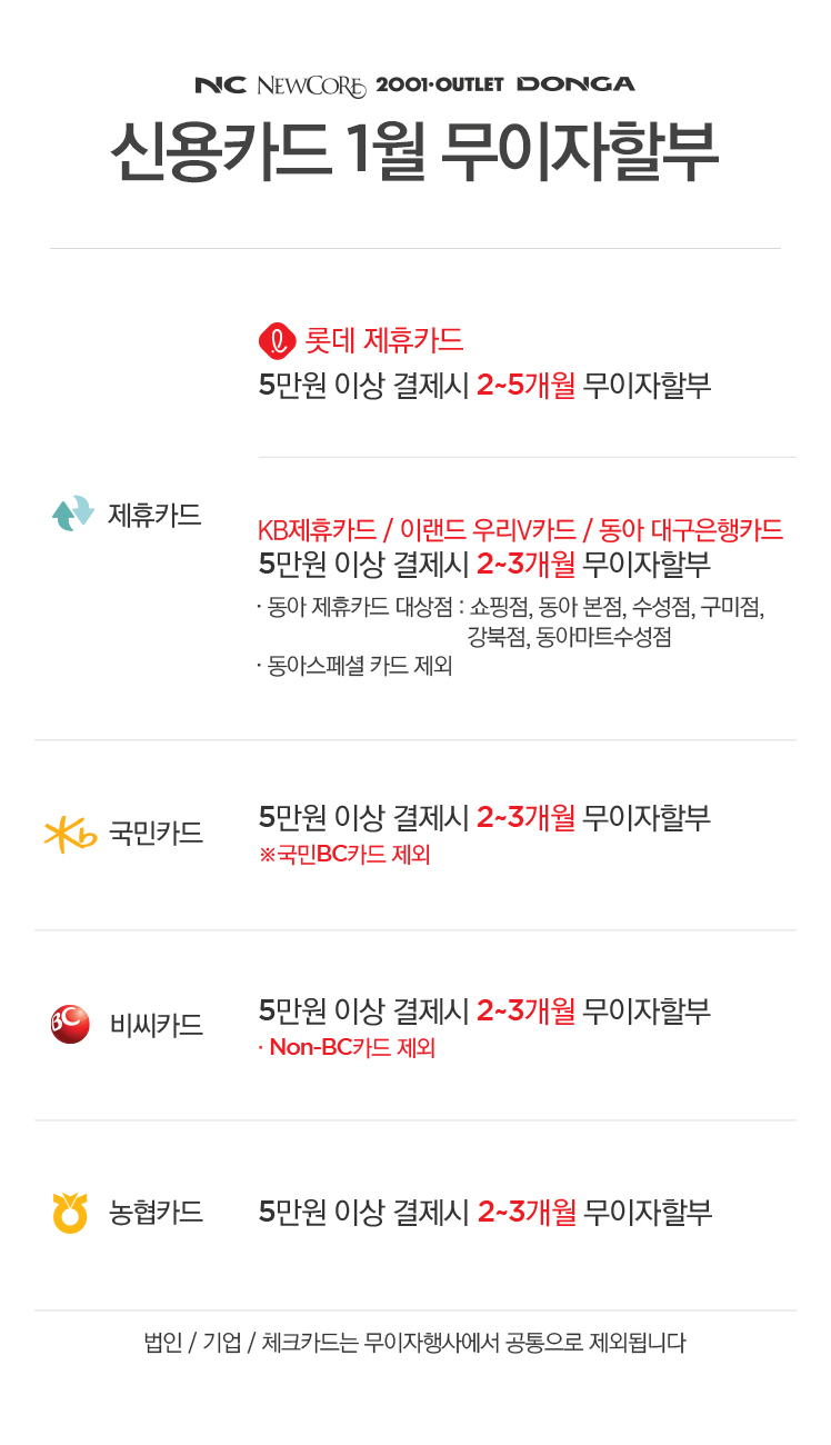 2020년 1월 신용카드 무이자 할부 안내